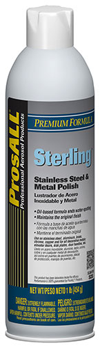 ProsALL® Sterling™ Stainless Steel & Metal Polish has heavy-duty cleaning agents and surfactants that deep-clean stainless steel surfaces. Removes smudges, soil, oil and grease stains with a minimum of rubbing. Forms a protective shield against stains, water marks and rust without leaving a greasy film.
